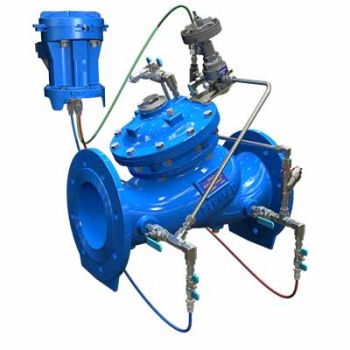 Solução de redução de pressão operada hidraulicamente e de modulação total que reduz a pressão mais alta a montante para uma pressão mais baixa a jusante, com base no caudal ou em janelas de tempo, independentemente das variações na procura ou na pressão a montante.