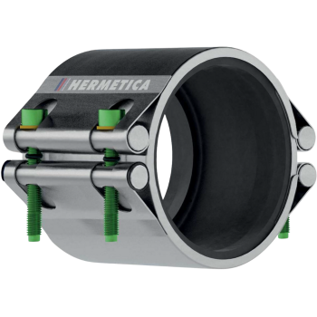 A abraçadeira de reparação Série 3 da HERMETICA, com 90 mm de largura, oferece uma garantia de estanquidade para roturas até 45 mm.