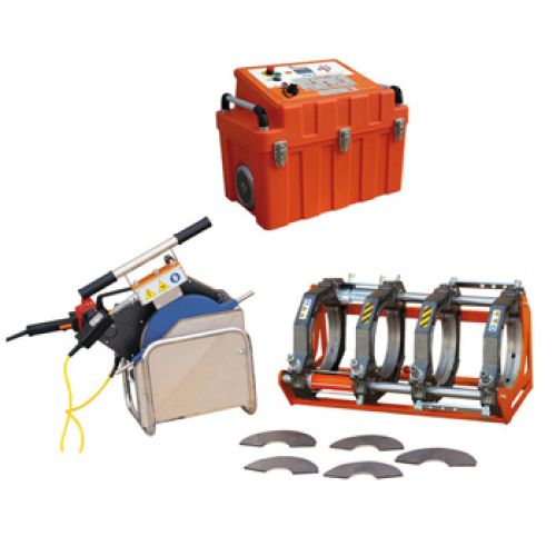 Máquina de alinhamento automático para soldadura de tubos em pressão e tubos de drenagem utilizados no transporte de água, gás e/ou outros fluídos. Construída segundo a norma UNI 10565, ISO12176-1.