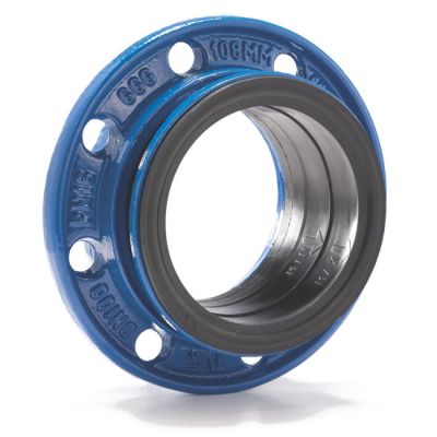 Flange ligador com junta standard para tubos de ferro fundido dúctil. Para água potável e líquidos neutros até uma temperatura máxima de 70ºC.
