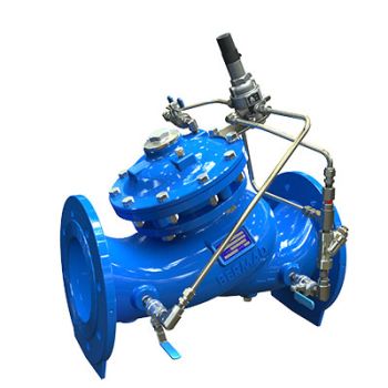 Válvula de alívio/sustentadora de pressão de operação hidráulica que pode cumprir duas funções distintas: Quando instalada na rede principal ("in-line"), mantém uma pressão mínima pré-definida a montante, independentemente de flutuações no caudal ou na pressão a jusante. Quando instalada como uma válvula de circulação ou de "derivação da rede", alívia o excesso de pressão da rede quando esta sobe acima do máximo pré-definido.